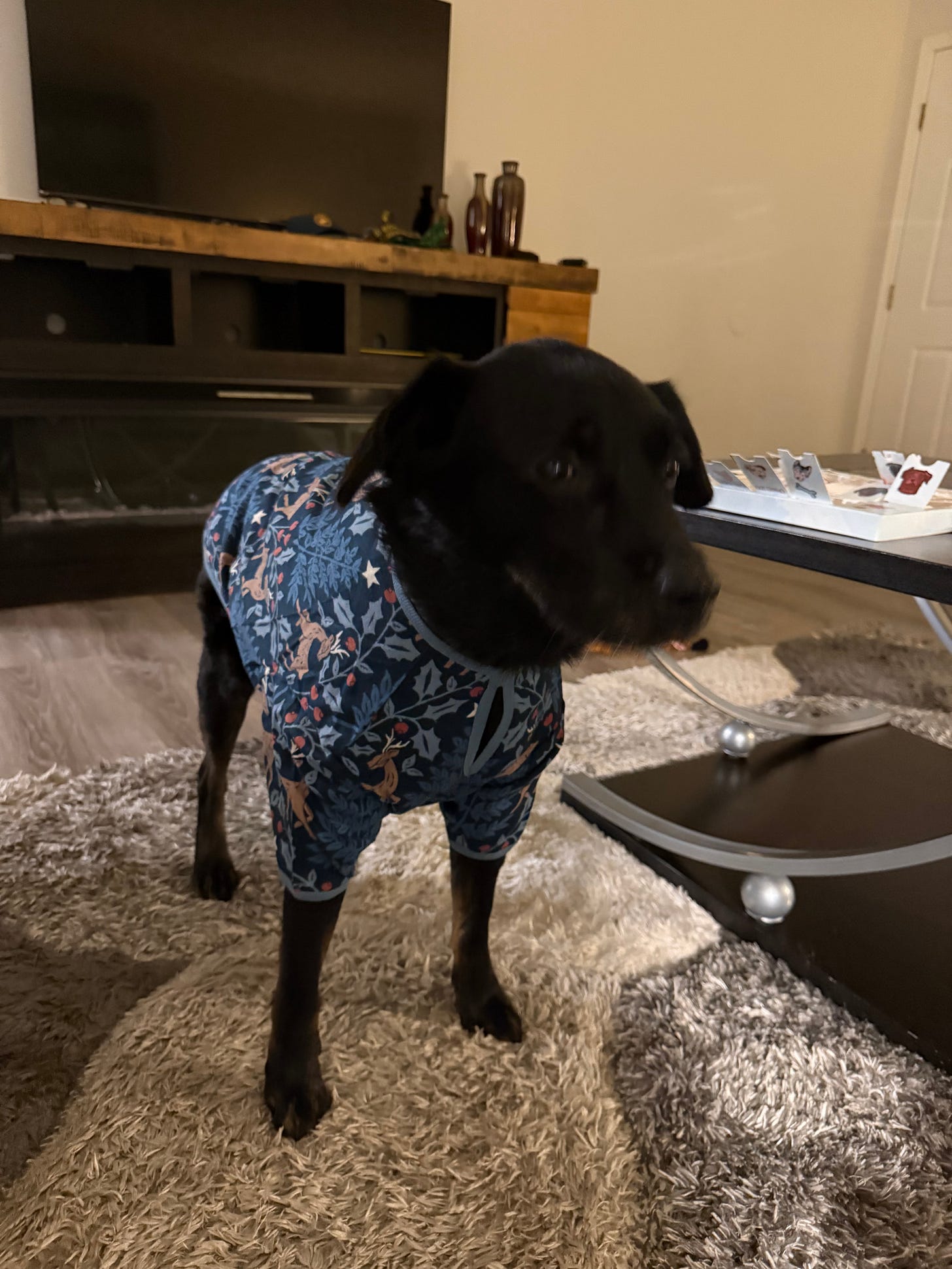 Since we rotate our presence between Ohio and my in-laws in Florida for Christmas, we packed the box of gifts they mailed us. On Christmas morning, we FaceTimed Anonymous’s parents and opened up their presents. They knocked it out of the park this year – by giving us a set of matching pajamas!